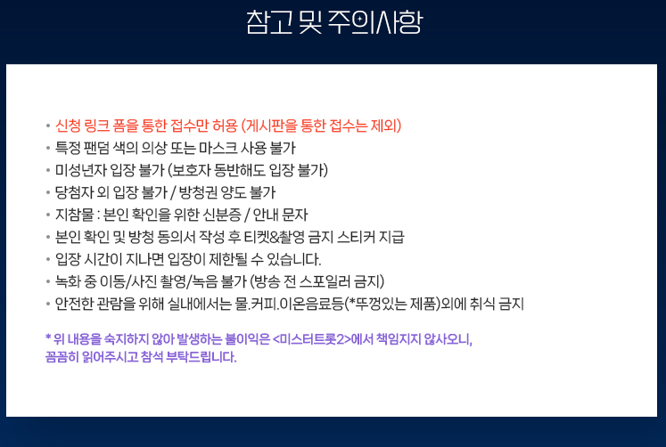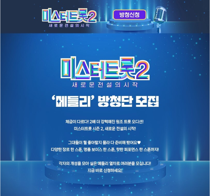 이런 분들을 위해 미스터트롯2게 메들리 방청단을 모집한다고 합니다.