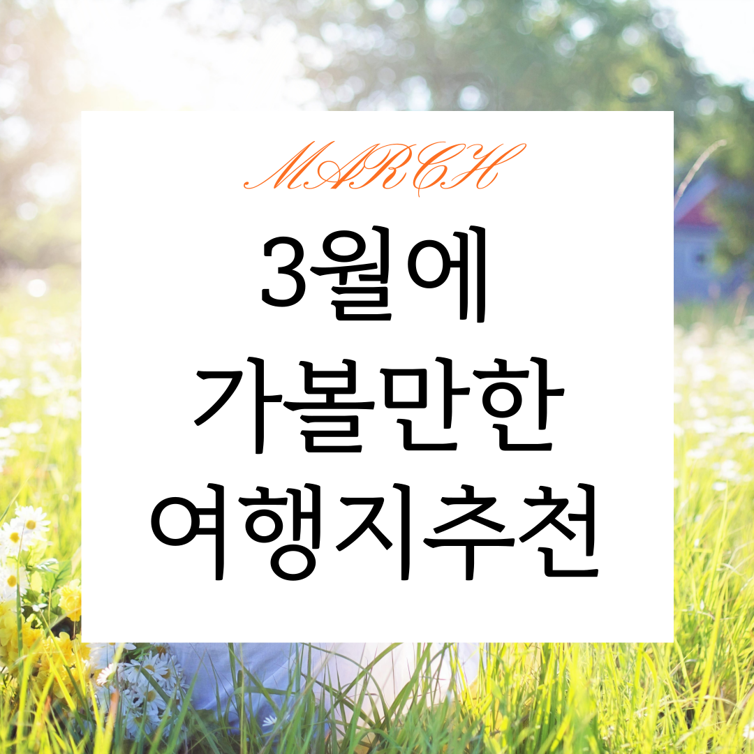 2월도 어느새 중반을 향해 다가가고 있는데요. 다가오고 있는 3월은 가족, 친구와 함께 여행을 가기 좋은 날씨죠? 그래서 오늘은 3월에 놀러가기좋은 여행지에 대해 이야기해보려고 합니다. 그럼 함께 가보실까요?