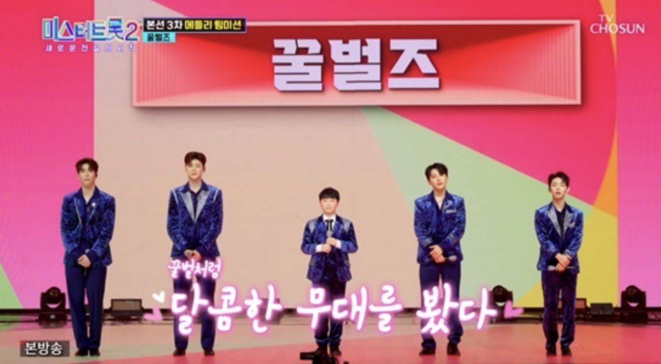꿀벌즈는 4위 박지현이 결성한 팀인데요. 멤버는 박지현, 장송호, 강재수, 성리, 송도현인데요. 꿀벌즈의 다섯 멤버는 메들리 무대를 위해 합숙까지 하는 노력을 보였다고 합니다. 송도현은 무대 중간에 하모니카 연주로 다른 실력을 발휘하기도 하였는데요. 심사위원인 진성은 꿀벌처럼 달콤한 무대라는 평을 내리며 극찬을 하였습니다. 꿀벌즈의 점수는 아래와 같습니다