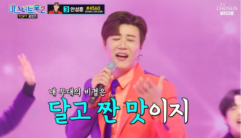 다음 무대에 오른 것은 안성훈이었습니다. 안성훈은 풀볼룸의 곡인 싹가능으로 무대를 꾸몄는데요. 유쾌한 퍼포먼스와 시원시원한 가창력으로 무대의 흥을 올려주었습니다. 그로 인해 최고점은 100점, 최저점은 93점을 받았습니다.