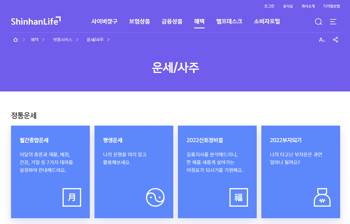 처음 소개해드릴 곳은 신한라이프에서 제공하고 있는 운세입니다.