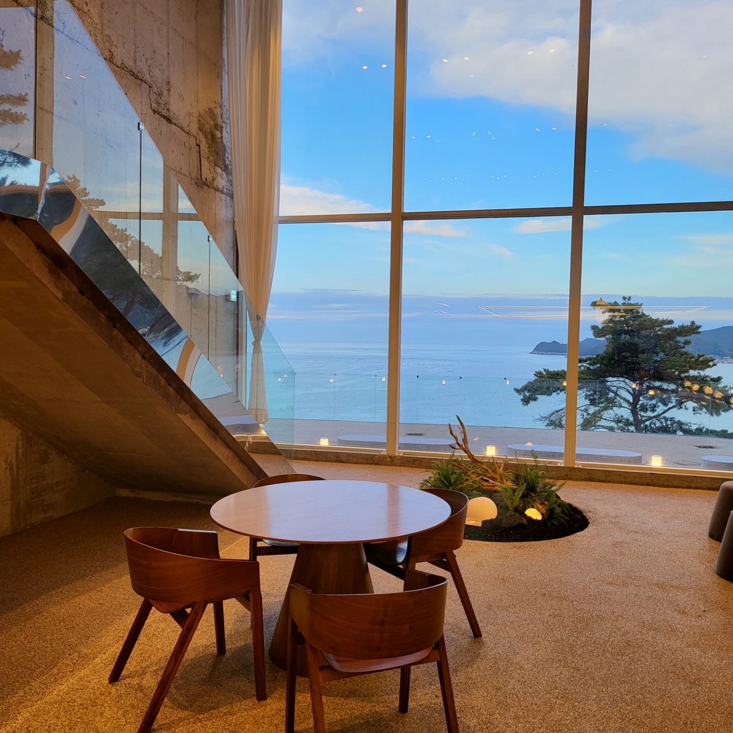 통창으로 보이는 바다가 인상적인 카페입니다.