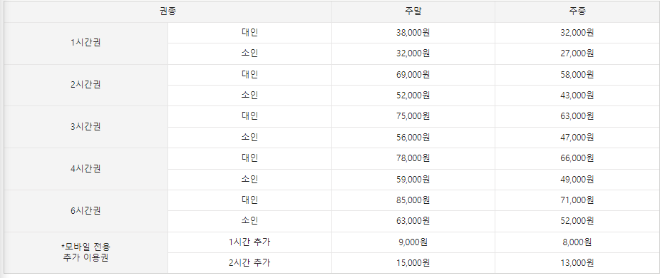 장비 렌탈은 대인과 소인으로 구분되고 있으며, 의류 렌탈을 현장 접수만 가능하다고 합니다.