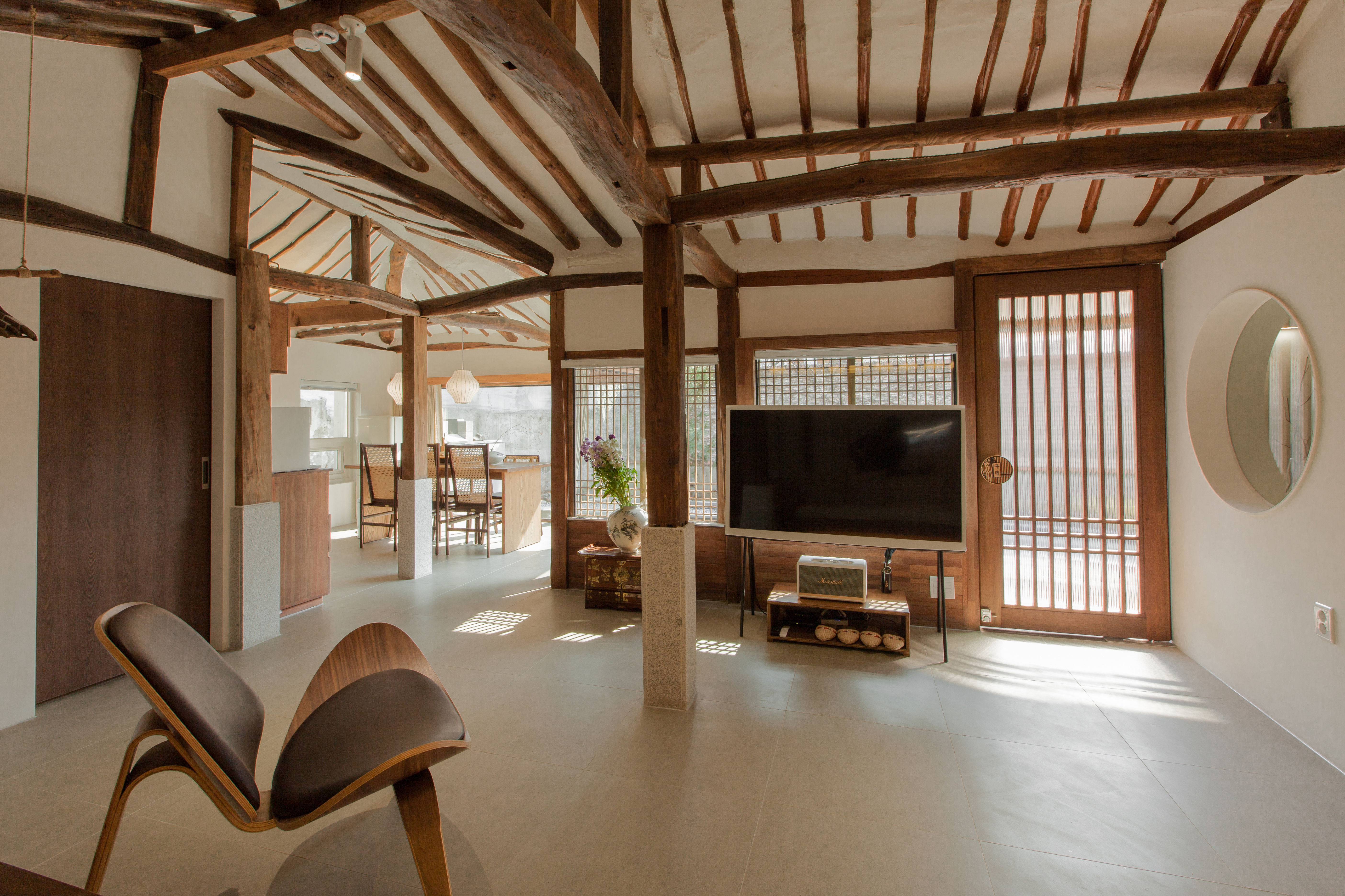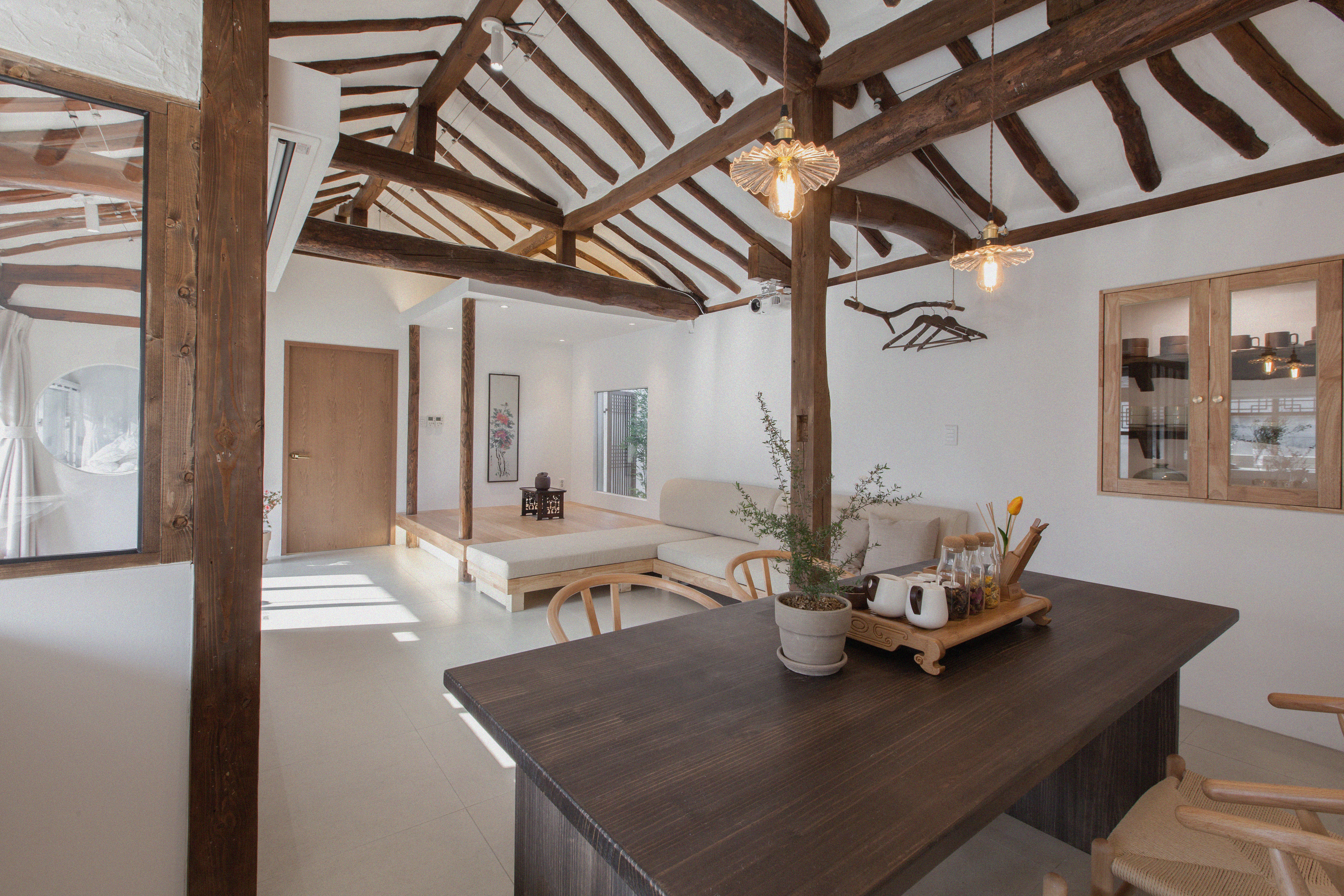 현대적인 분위기와 전통을 합친 가구와 인테리어로 배치되어 있습니다.